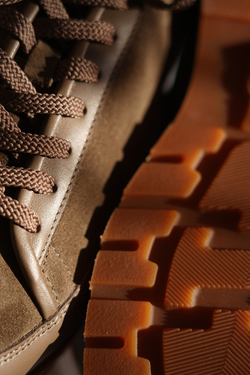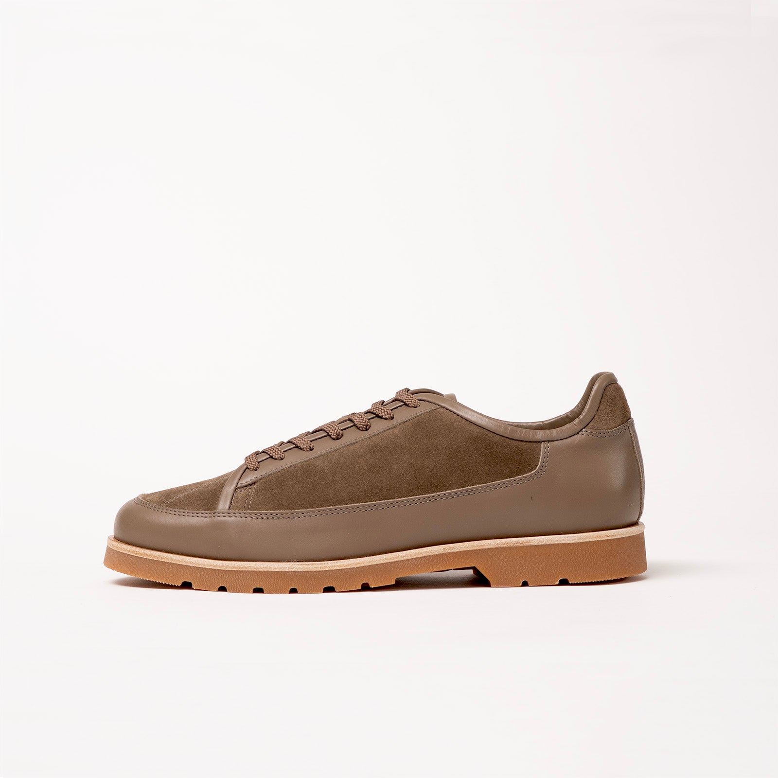 A cushioned latex sole that moves with you, set with a subtle heel for easy refinement. We've paired semi-aniline leather with suede.