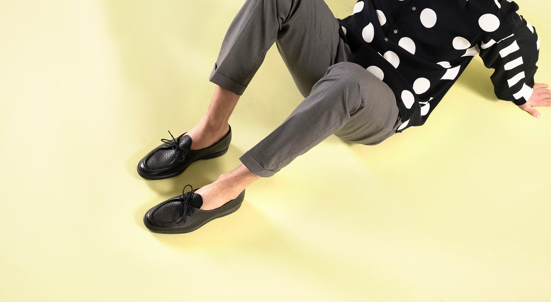 Its shape comes from the original moccasin — flat, supple, close to the ground. But where other loafers fail on the first wet cobblestone, the Beaune holds. Its grained leather shrugs off rain without losing its soft hand. Its natural rubber sole grips without hardening over time.